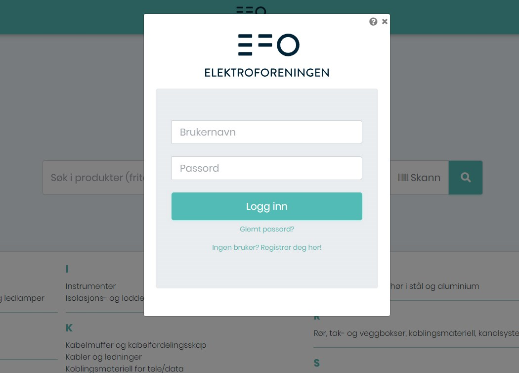For å administrere dine produkter i EFObasen må du logge inn med brukerkontoen du har fått tilsendt. Dersom kontoen din har tofaktorautentisering (MFA) aktivert, vil du bli bedt om å bekrefte identiteten din med en ekstra metode etter at du har tastet inn brukernavn og passord.